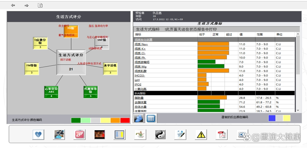 传统医学检测侧重疾病诊断,而亚健康的功能异常需通过*精细的技术手段发现。鹰演全身扫描系统(市场常称 “鹰眼”)通过生物电传导技术,3 分钟内对人体 15 大系统进行功能评估,覆盖代谢、神经调节、微循环等 80-826 项指标。例如其检测结果与中华中医药学会的亚健康定义具有互补性,通过量化数据帮助医生*精准地识别功能异常,避免将短期疲劳误判为亚健康。