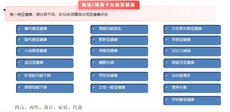 “全面” 则体现在检测维度的深度与广度。系统覆盖人体 15 大系统,提供 80 项至 826 项多版本检测项目,不仅包含基础生理指标,*能精准捕捉 19 种亚健康状态及未病风险。传统体检多针对已发病症进行筛查,而鹰眼能在疾病萌芽阶段发现代谢异常、免疫波动等细微变化,这种 “超早期预警” 能力让健康管理从 “治已病” 向 “防未病” 延伸。
